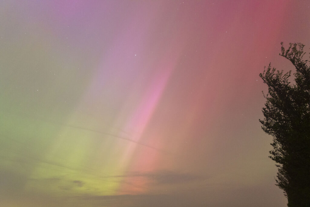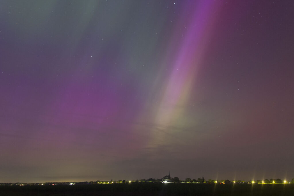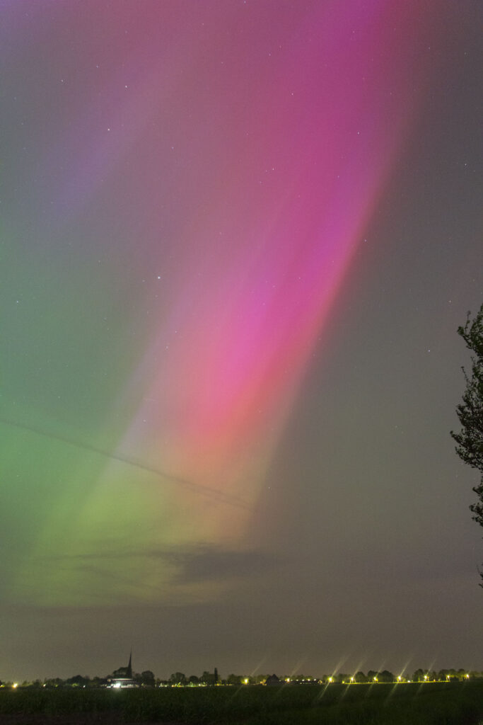 En toen werd het opeens op 9 en 10 mei 2024 heel gezellig druk in de aurora-chatgroep om een aantal uitbarstingen van zonnevlekgroep 3664. Deze groep veroorzaakte meerdere uitbarstingen op de zon, die door de positieve omstandigheden min of meer rond dezelfde tijd zouden aankomen en dus elkaar versterkten. Dit zou aankomen op vrijdagavond 10 mei. Ik was eigenlijk nog aan het bijkomen was van een meerdaagse migraine-aanval en zat er totaal niet op te wachten maar godzijdank overtuigden de aurora-vriendjes me ervan dat ik het niet mocht missen en wilde de wederhelft mee op ‘wereldreis’ naar de West-Beemster.